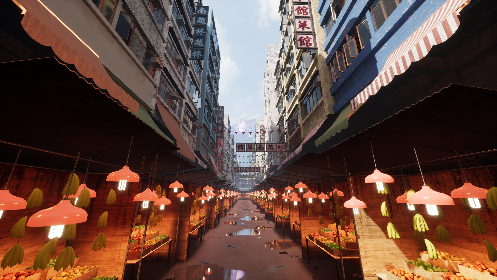 For this project I was inspired by various market streets that are close to my home in Kowloon, Hong Kong. Kowloon is part of the lesser-known side of Hong Kong to tourists, and contains much older architecture and infrastructure.